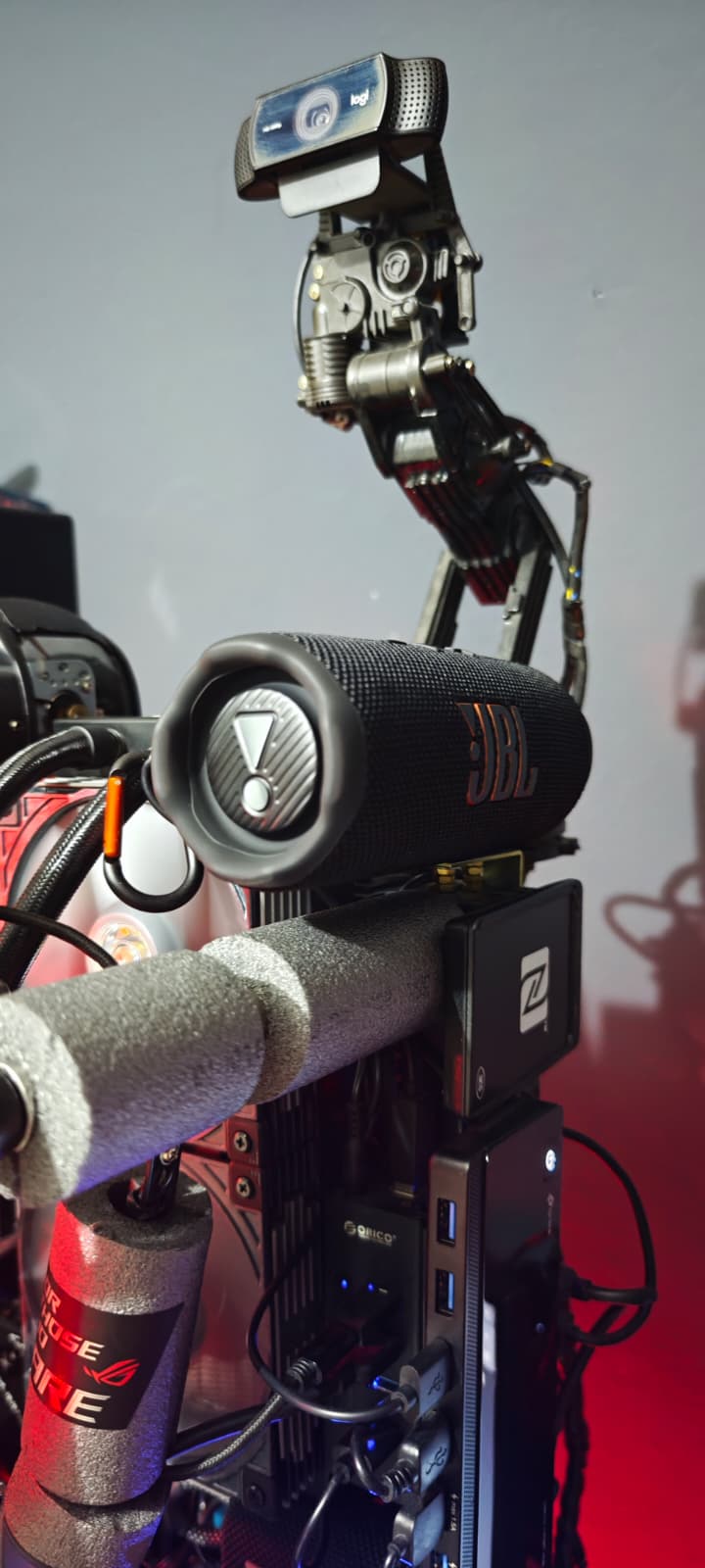 The emo-240 doesn't just process data—it watches. We have integrated a futuristic, 290-degree autonomous motion-tracking camera designed to look and move like the head of a cybernetic organism.